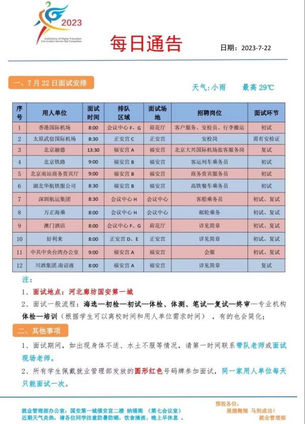 7 月 21 日供需對接就業(yè)活動第五天,共有 14 家單位進駐現(xiàn)場,展開招聘。他們分別是:深圳航空、烏魯木齊航空、天津航空、首都空港貴賓、長沙黃花國際機場、廣州白云國際機場安檢護衛(wèi)部、上海機場貴賓、萬正海乘、陽光保險集團、北京工商銀行、北京錦悅嘉程、國企央企聯(lián)合、武漢天河機場、鄂爾多斯機場貴賓等。據(jù)統(tǒng)計,今日面試人次達 14010 人,通過面試人數(shù)為 3433 人。截止到 21 日晚間,總計參加面試 51803 人次,通過面試 10841 人。其中,通過航空公司面試 3070 人。